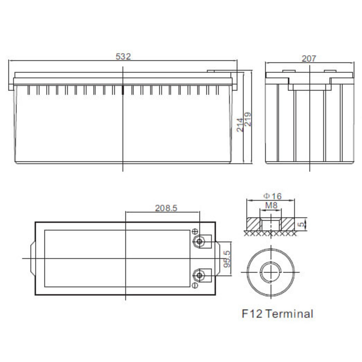 BrightSolar vedligeholdelsesfri AGM-batteri DC12-160Ah er langtidsholdbart og særligt velegnet til cykliske anvendelser med hyppige afladnings- og opladningscyklusser, såsom sol- og vindkraftsystemer. Batterierne har 40% bedre levetid ved cyklisk drift sammenlignet med tilsvarende RA-serie batteri.