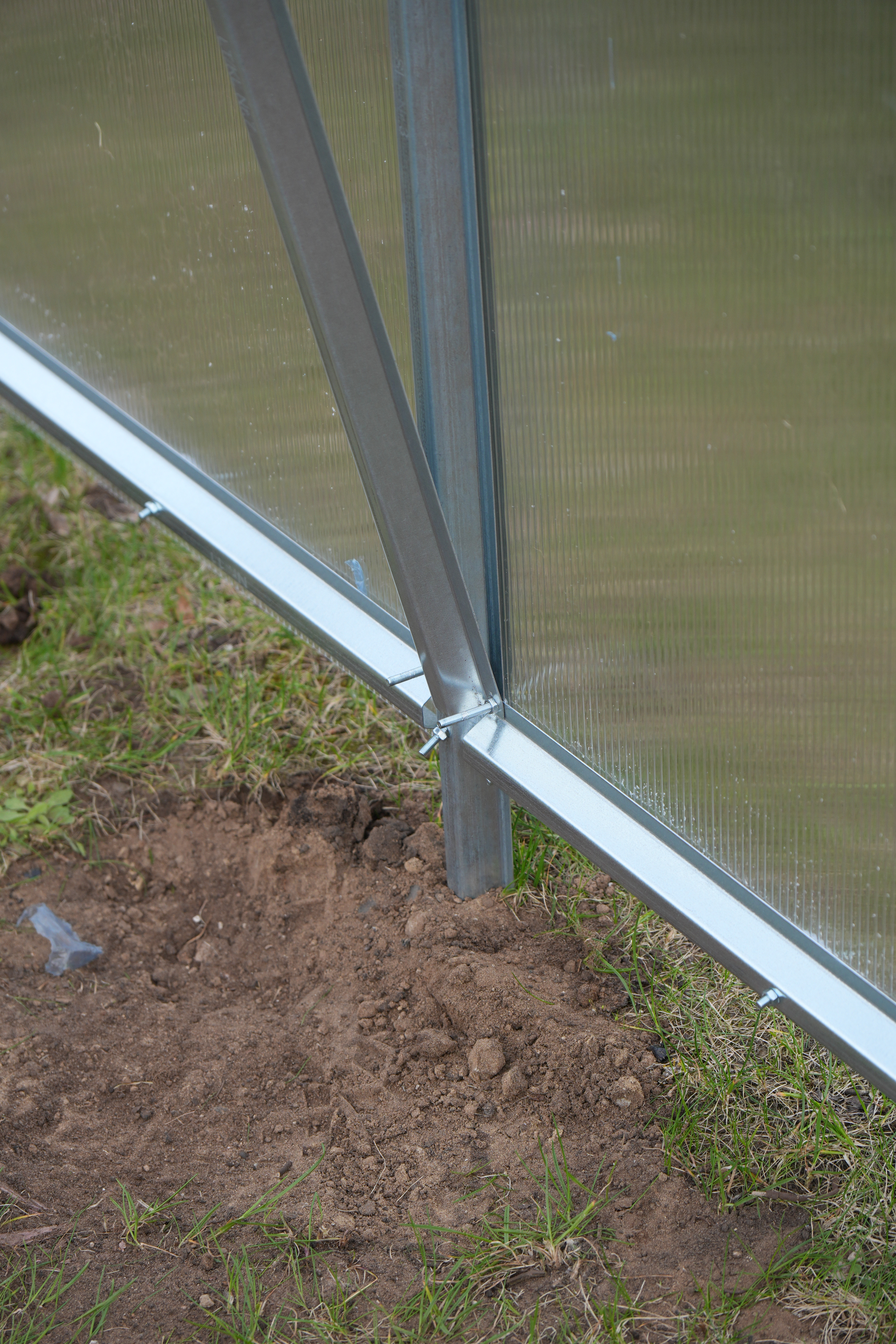 Drivhusbue er gravet ca. 35 cm ned i jorden, så drivhuset står fast og ikke er udsat for vind