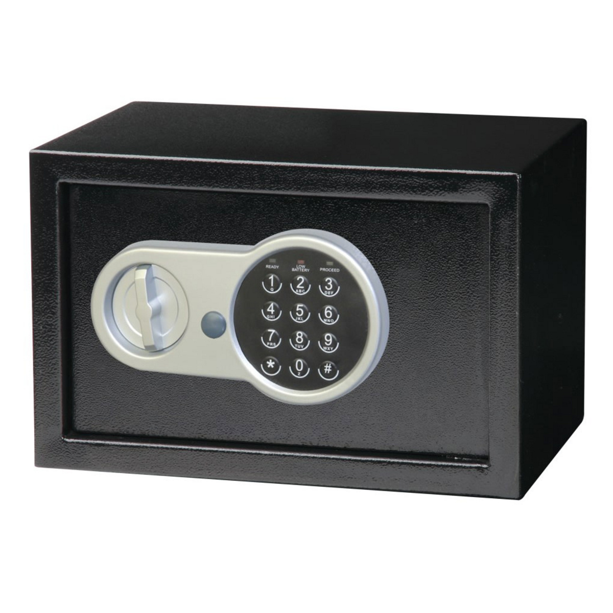 Sikrer dokumenter og værdigenstande mod uautoriseret adgang. Sikkerhedsboksen betjenes med en programmerbar 3–8-cifret kode, så flere personer kan få adgang. Leveres med to nøgler, så nødnåbning med nøgle er mulig. Den elektroniske lås fungerer med 4x1,5 V AA-batterier, som medfølger.