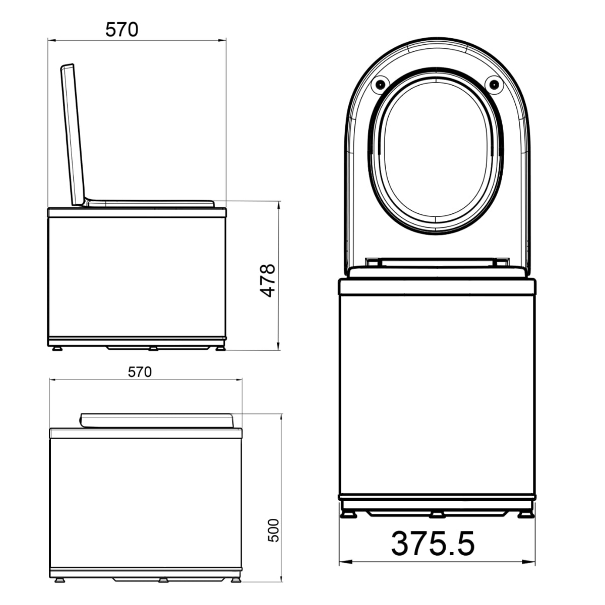 - Mål (L x B x H): 375 x 570 x 515 mm
