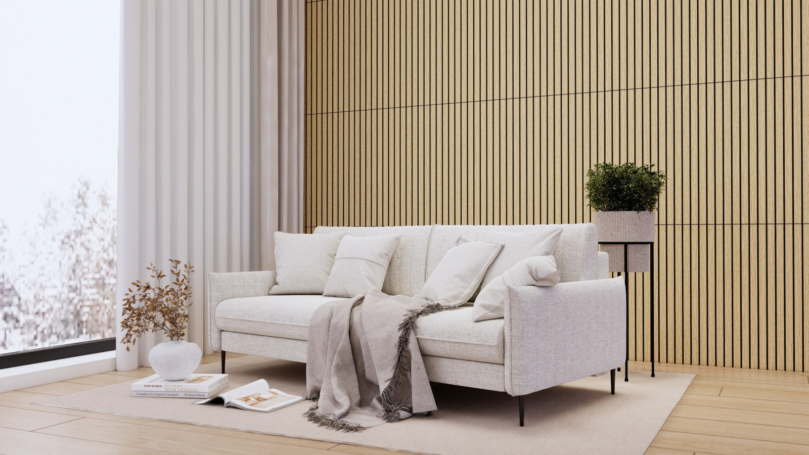 Evella selvklæbende interiør-/akustikpanel Slim Line Easy 60 2 stk. eg. bringer den naturlige varme fra ægte egetræsfiner og et iøjnefaldende tredimensionelt, færdigt udseende til dit rum med nem Velcro-fastgørelse. Skab ubesværet en stilfuld akustikvæg, sengegavl, polstret inderdør, møbel eller andet dekorativt element — kun din fantasi sætter grænser.