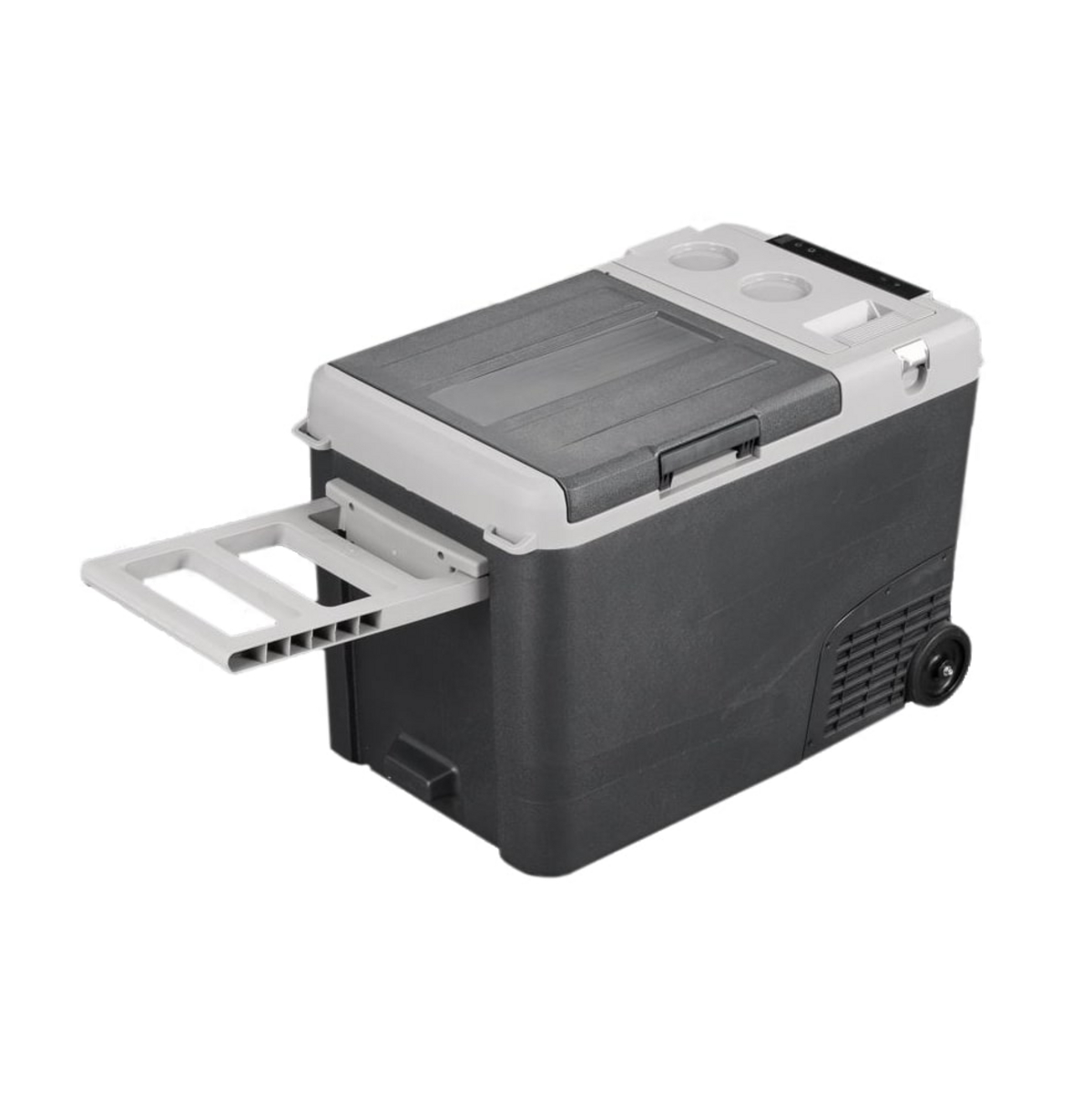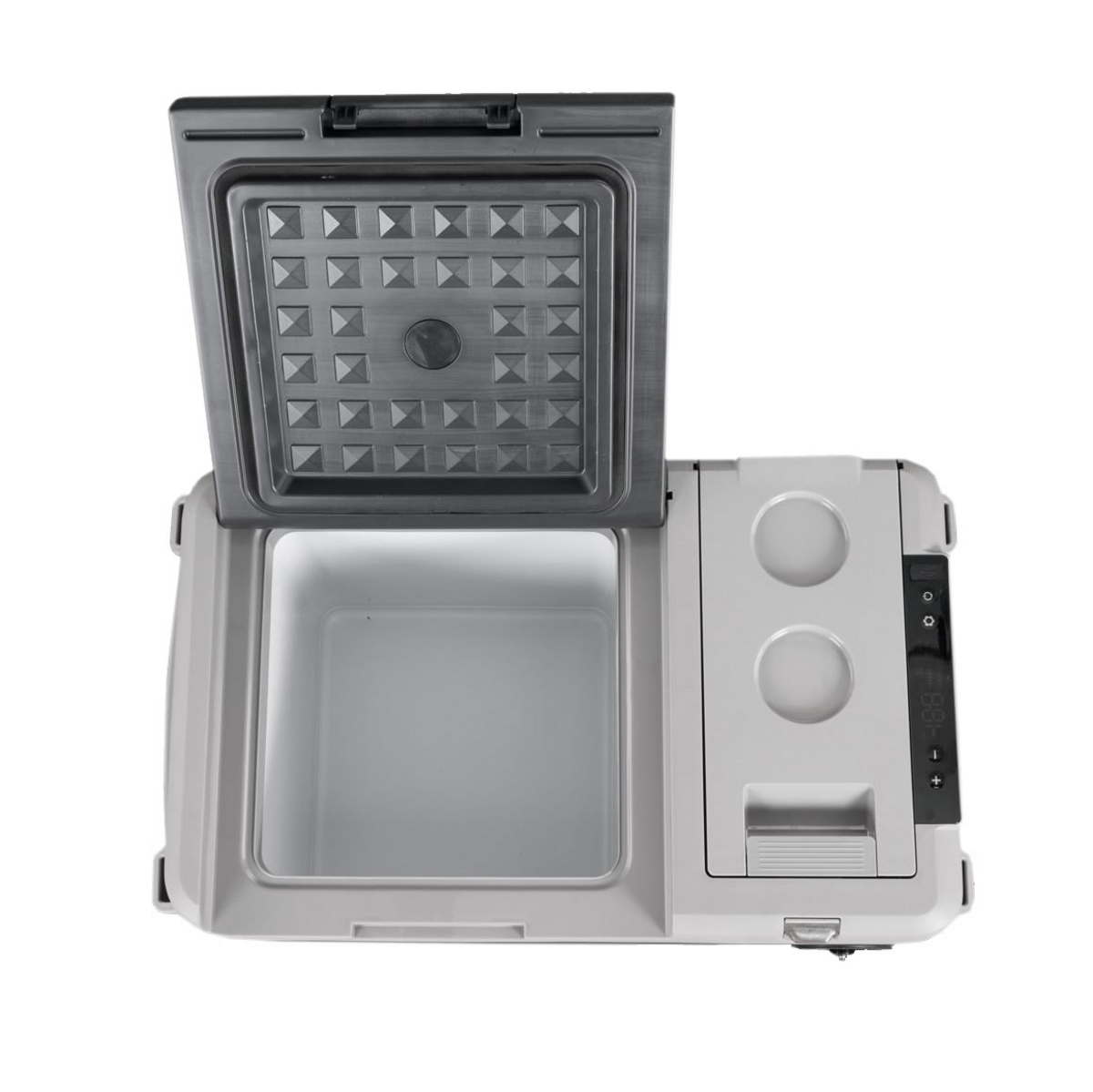 Den kompressor-drevne 35 liters transport-køle-/fryseboks er velegnet til brug i 12/24 V køretøjer. Den tåler vibrationer og hældning godt, så den fungerer fint selv under hårdere kørsel. Låget har en lås. Meget effektiv, køler ned til -20 °C med meget lavt strømforbrug, uanset omgivelsestemperaturen.