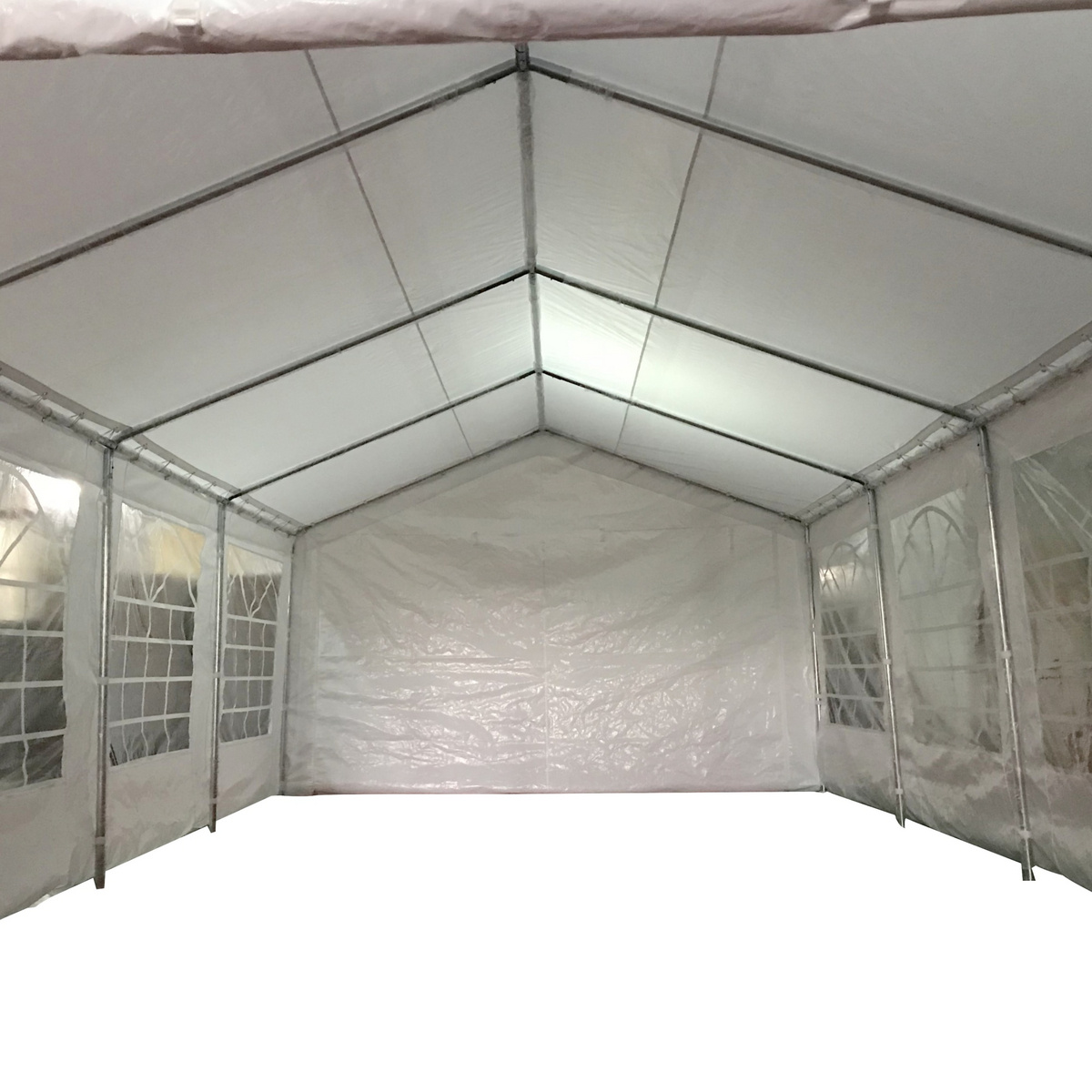 Partyteltet indeholder to store sidevægge med PVC-vinduer, og enderne af teltet har rulleop-døre med lynlås. Stofferne fastgøres nemt til teltets metalramme. Rammen er lavet af 38 mm tykke pulverlakerede stålrør, som modstår tidens tand.