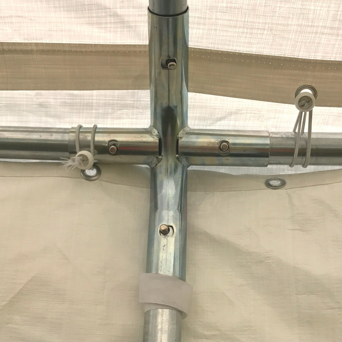 Partyteltet inkluderer to store sidevægge med PVC-vinduer, og teltets ender har op-rullede døre med lynlås. Stoffet fastgøres nemt til teltets metalramme. Rammen er lavet af 38 mm tykt pulverlakeret stålrør, som modstår tidens tand.
