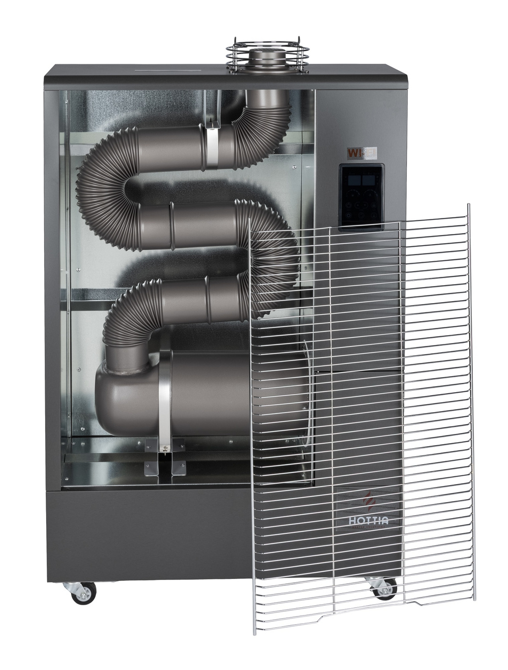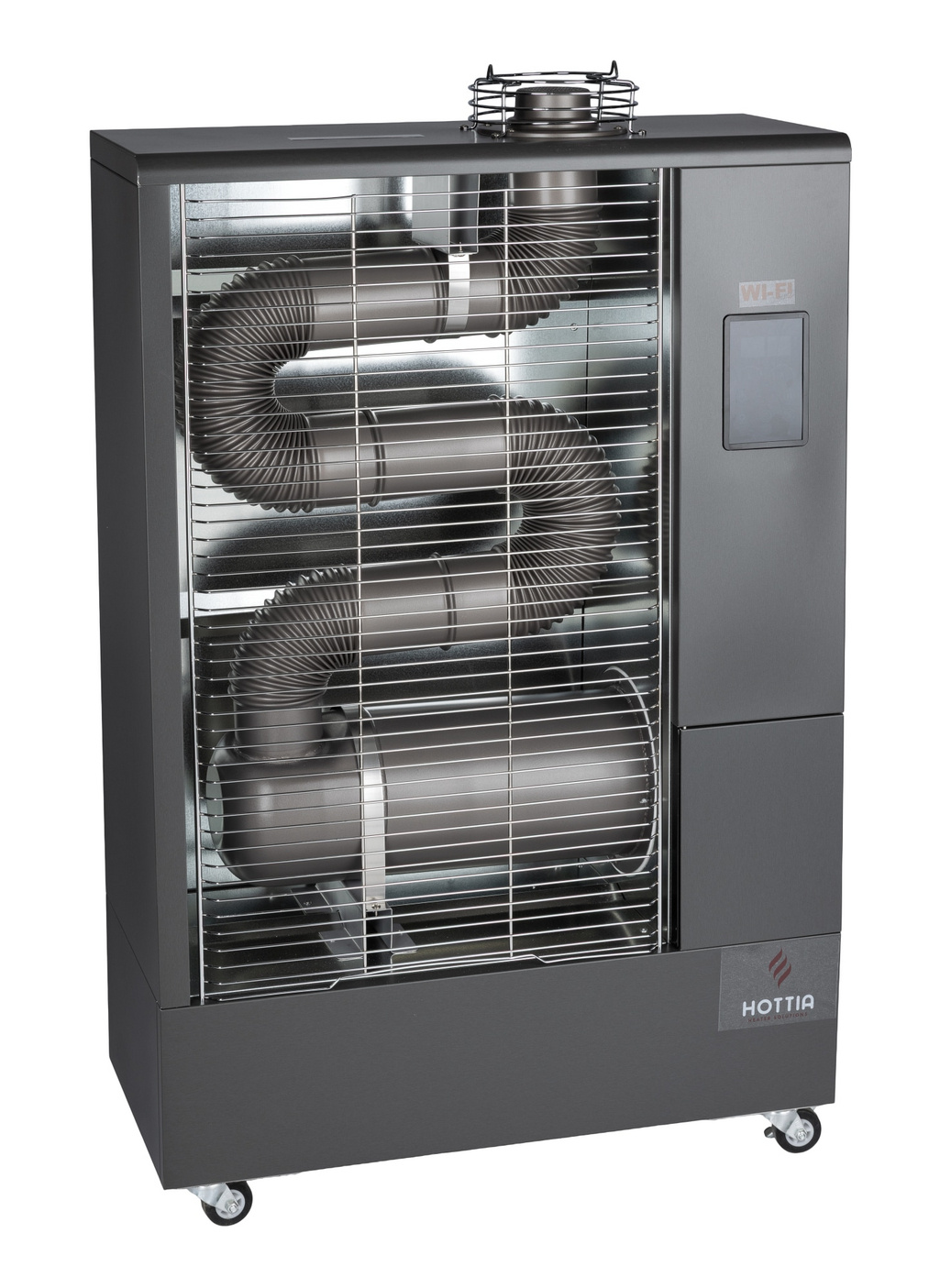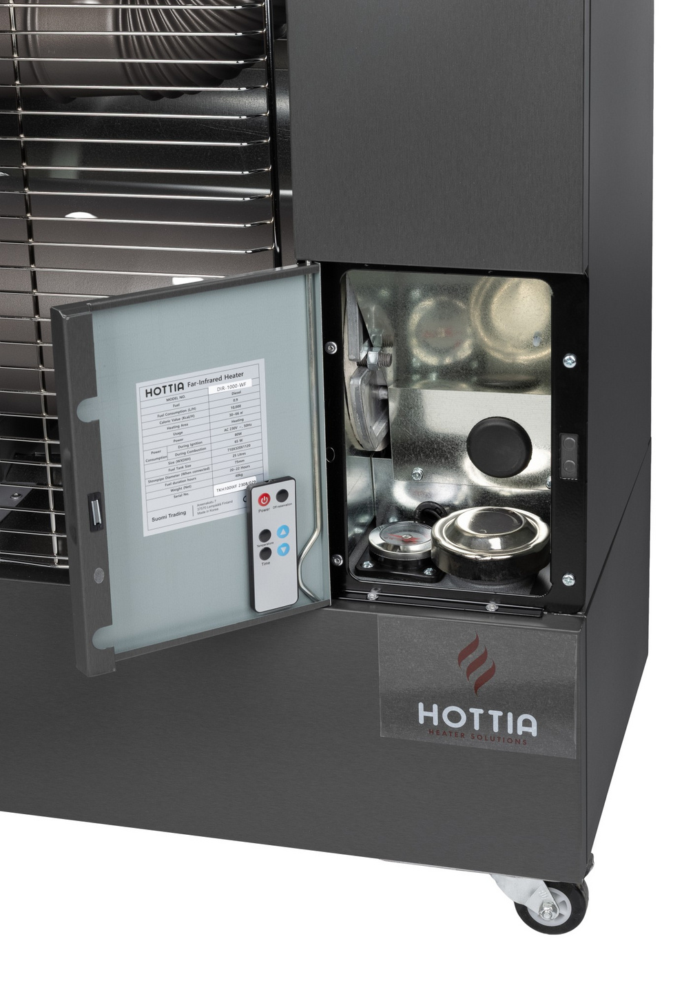 Hottia infrarød varmer DIR-1000 WiFi kan styres fra en smart enhed via WiFi. Download appen til din smartenhed, så du kan overvåge mængden af brændstof og varmen i rummet på afstand, samt tænde og slukke for din varmer.