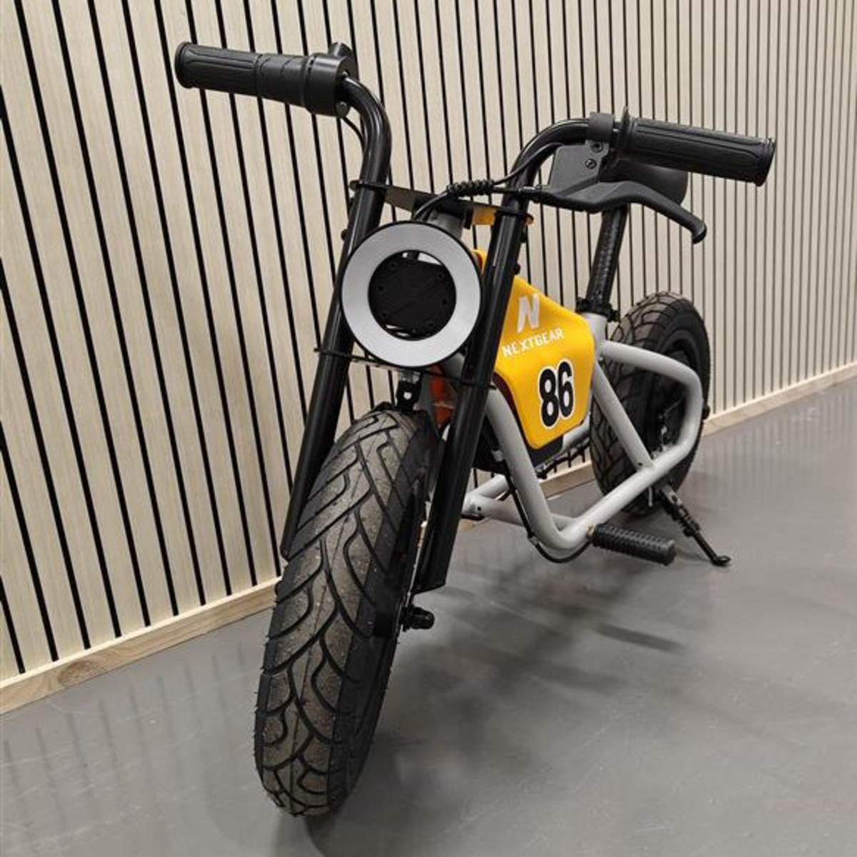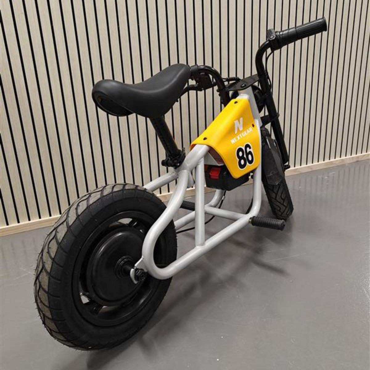 NextGear elcykel E-Cruiser Mini+ gul er en sikker og stilfuld "min første motorcykel" for de yngste ryttere i familien.