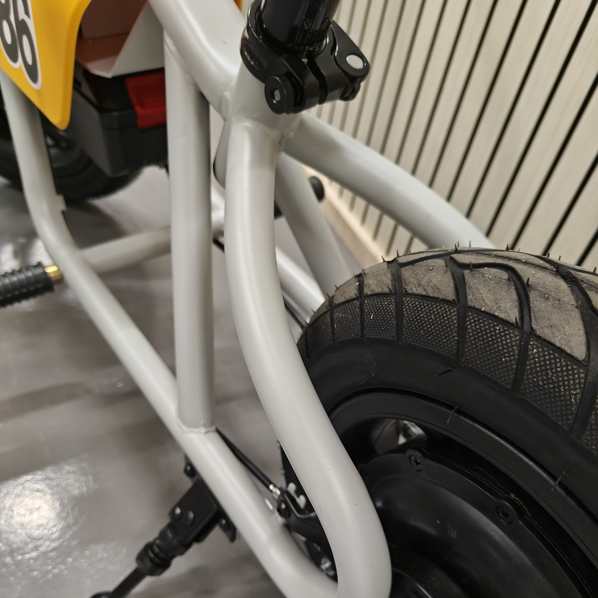 Den 160 W polarmotor forsynes af det medfølgende 18 V 5 Ah-batteri; mopeden er også kompatibel med 18 volt Timco Dual og Makita-batterier.