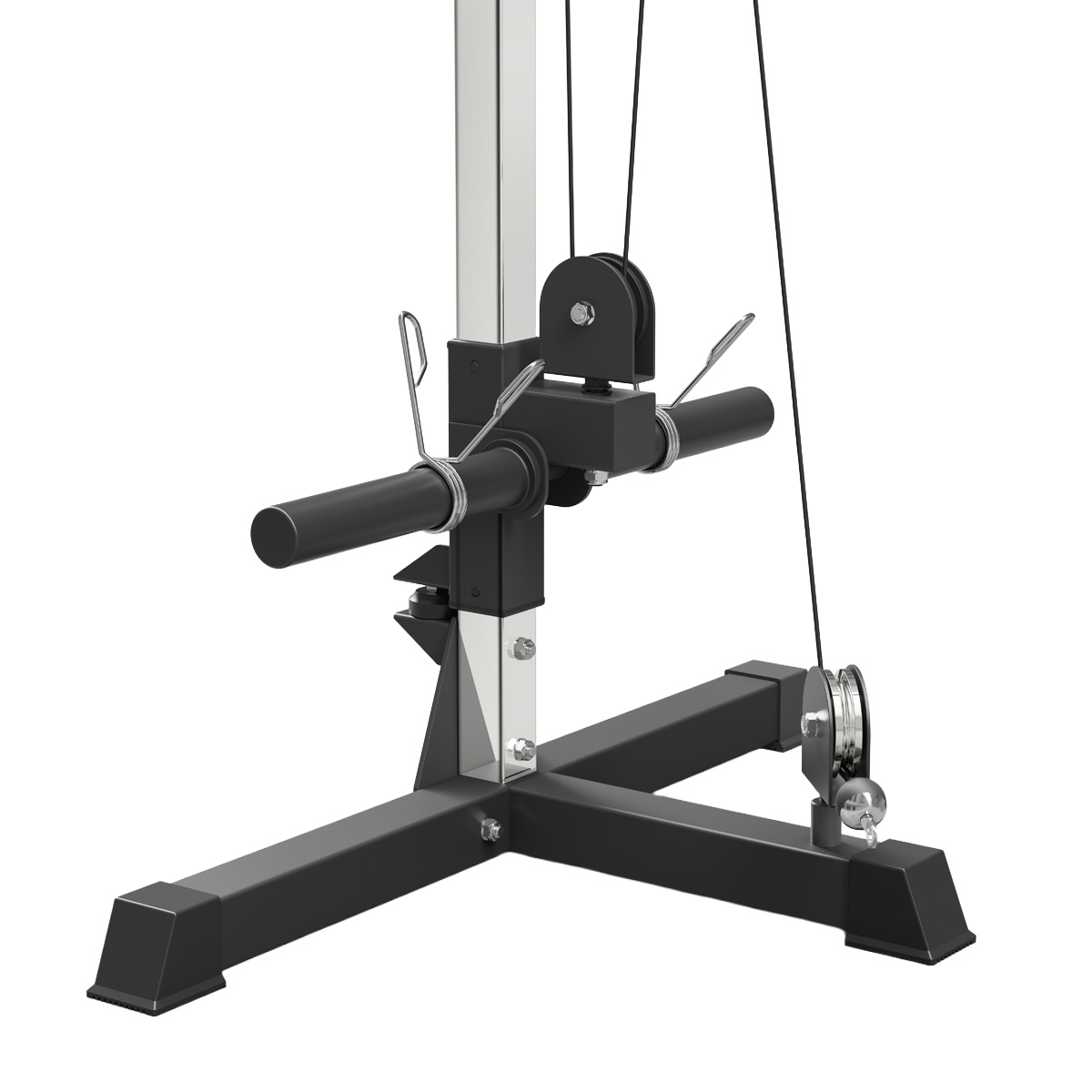 Versatil design: Maskinen tillader rotation af pulleyhovederne takket være rulleholderne, hvilket gør det muligt at udføre øvelser fra flere retninger, hvilket forbedrer træningsvariationen.