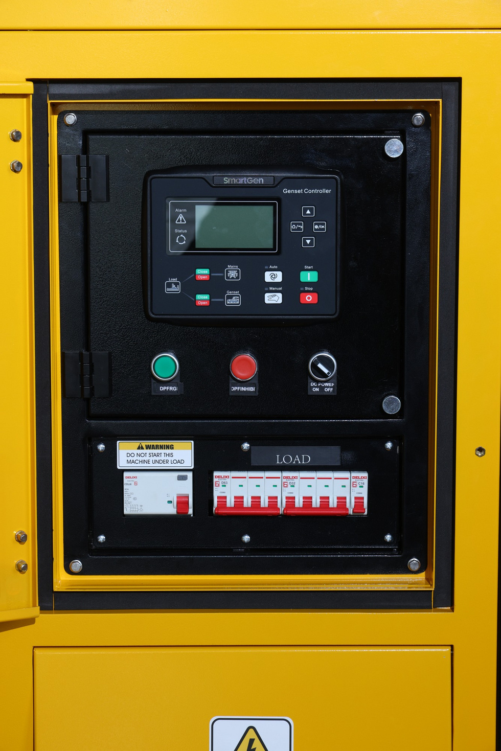 Alternatoren er udstyret med det nyeste og mest intelligente SmartGen 4020N betjeningspanel på markedet og et stort 80 Ah batteri. Lydisoleret stålhus med serviceluger. AVR-controller af høj kvalitet med sinuskurve, der opfylder de høje kriterier for THD < 3%.