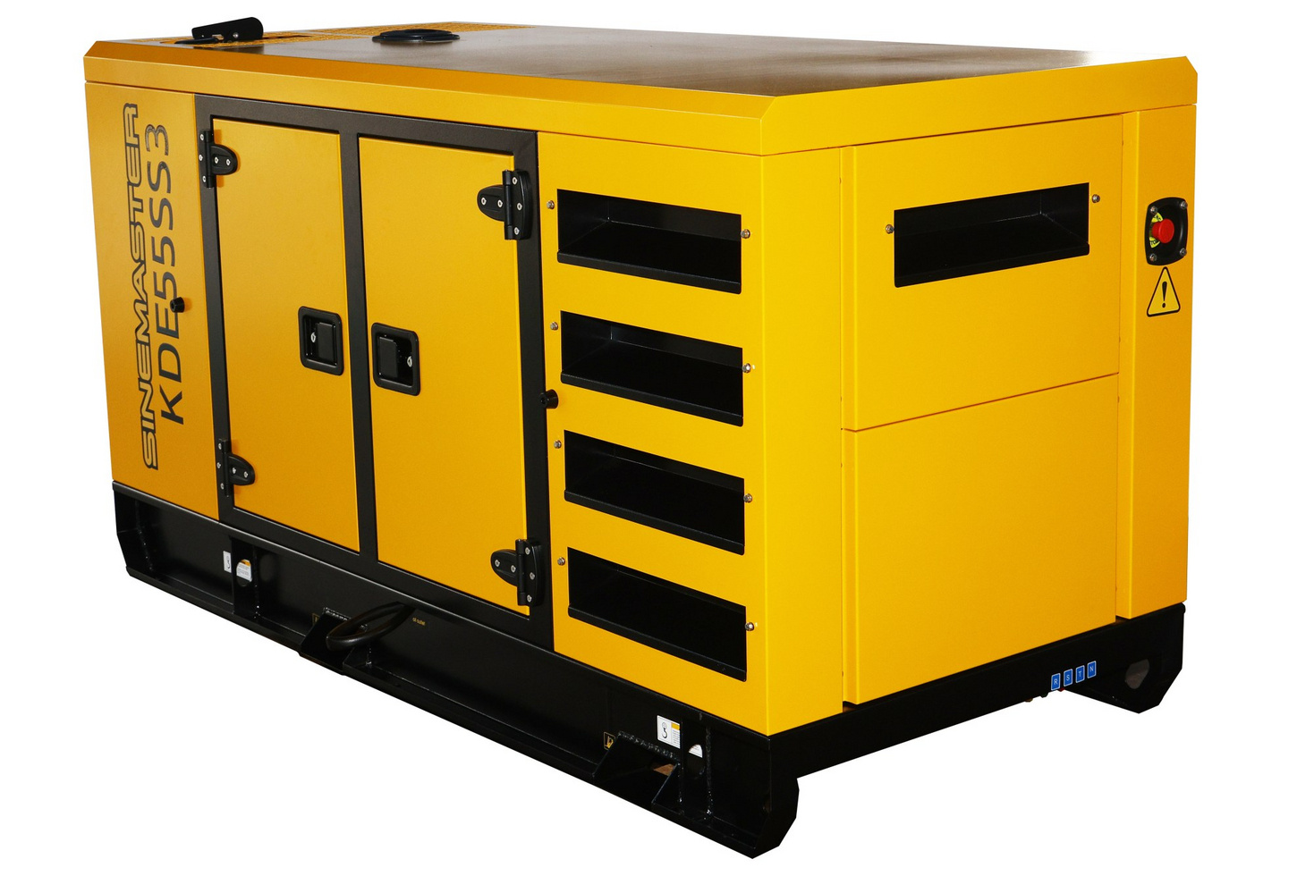 Sinemaster generator KDE55SS3 - Højkvalitets strømaggregat velegnet til professionel brug, hospitaler og offentlige bygninger. I overensstemmelse med de nyeste emissionsstandarder er det intelligente, elstartede aggregat pålideligt og langtidsholdbart. Det har desuden timeviser, oliepejl og en stor brændstoftank. Motoren har en af markedets længste levetider takket være sit lave omdrejningstal på 1500 rpm. Motorens levetid er op til fire gange længere sammenlignet med 3000 rpm roterende alternatorer.