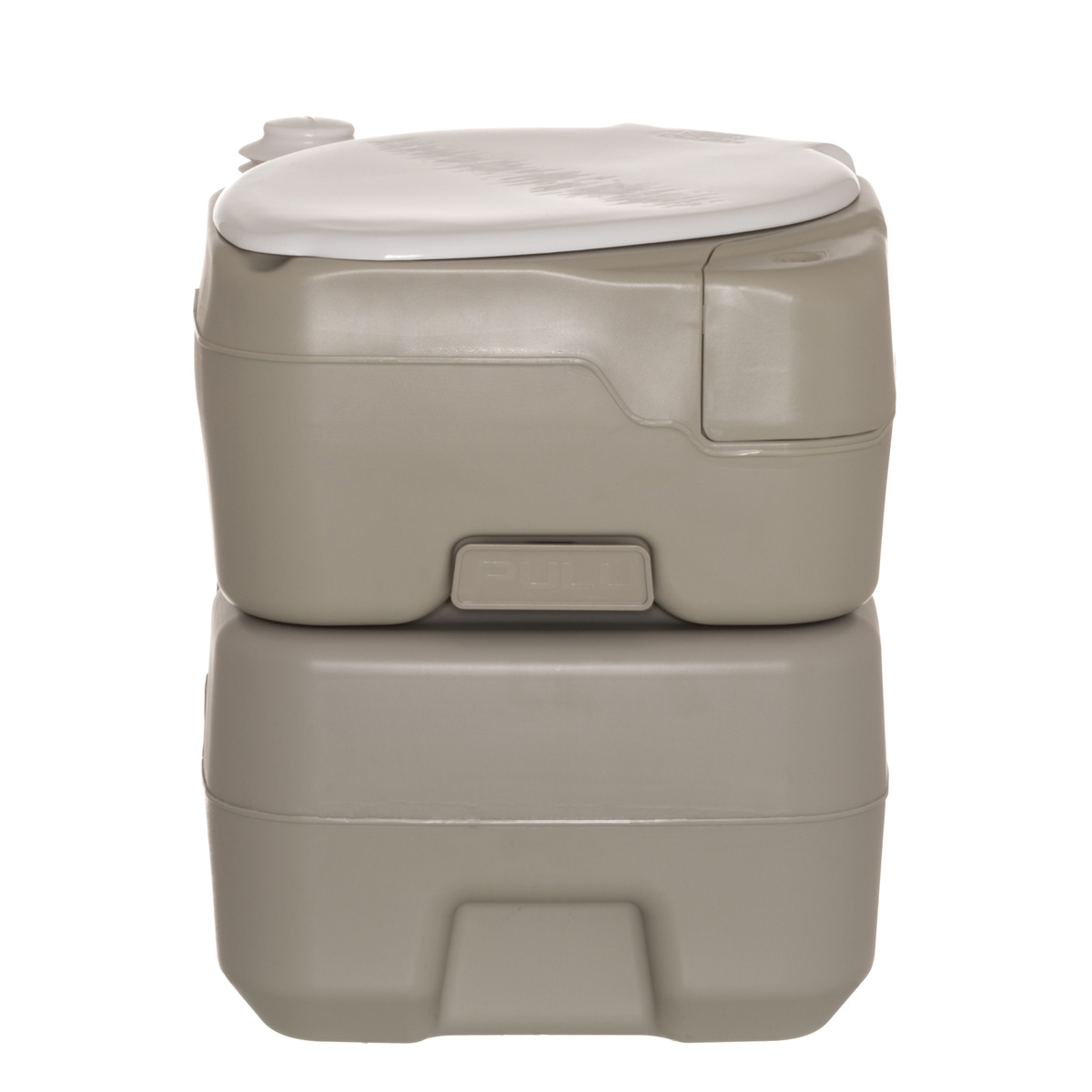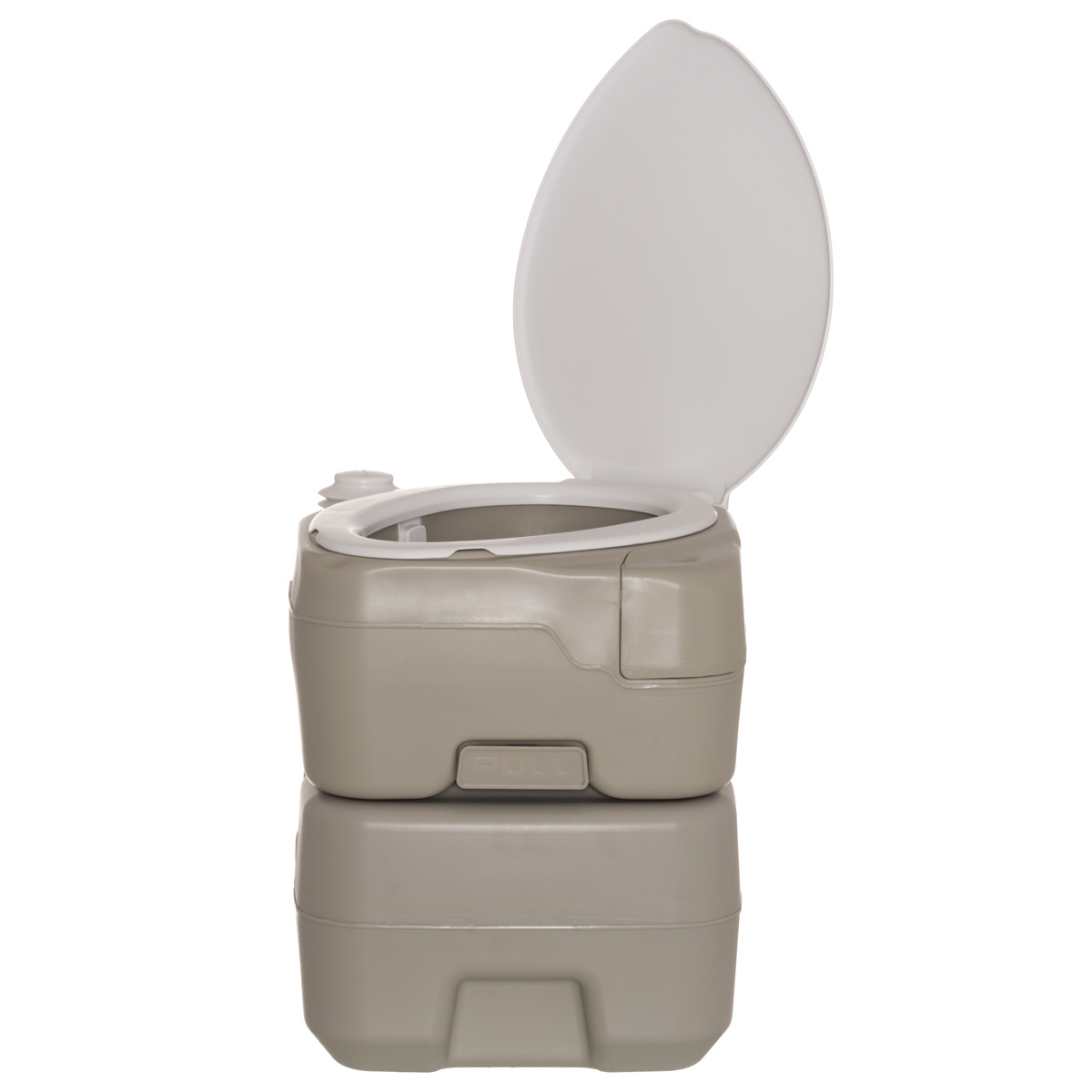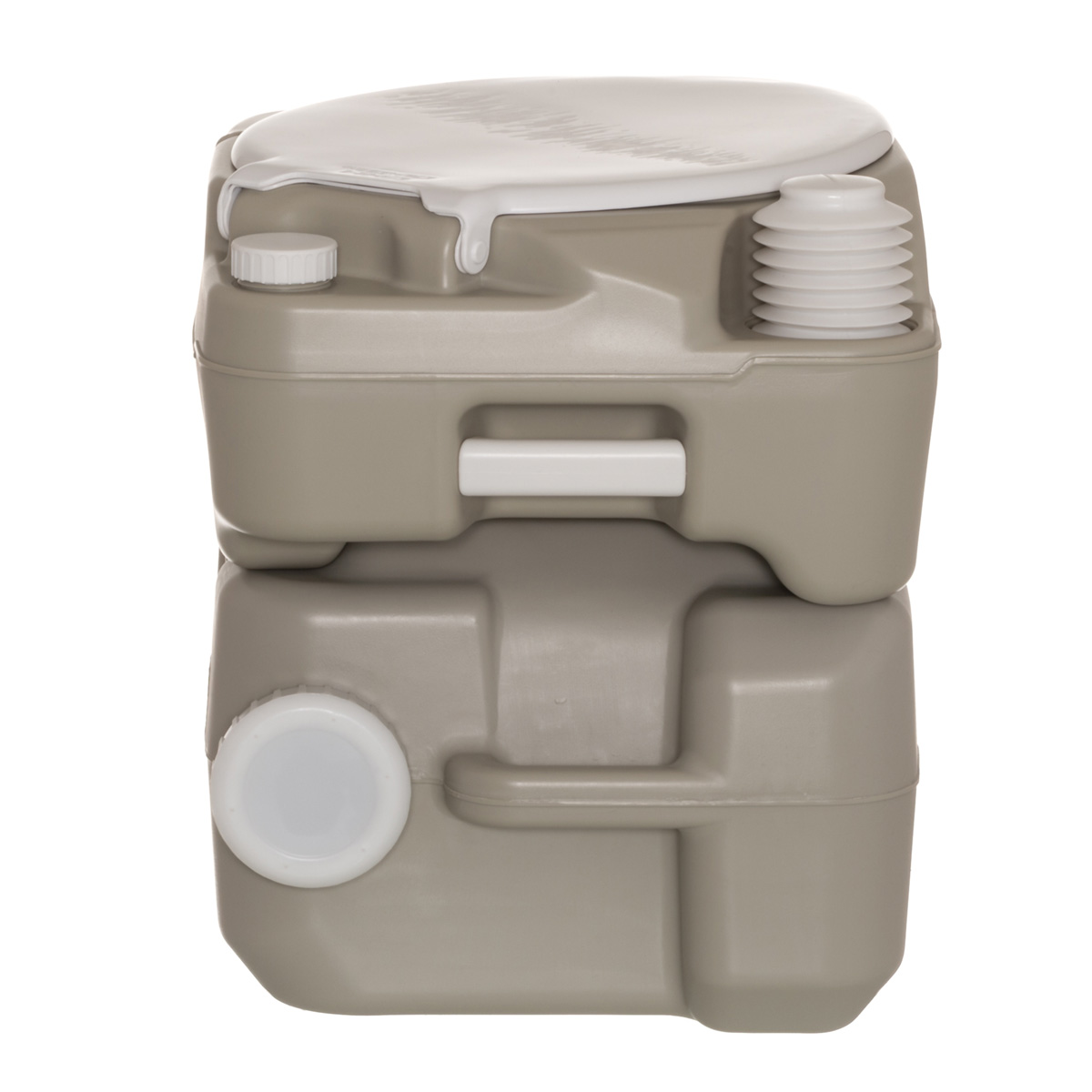 Bærbart toilet Corner. Hjørnemodel der sparer plads, men sædet er større end på traditionelle modeller. Velegnet til f.eks. båd, campingvogn, byggeplads eller sommerhus, da det ikke kræver vand- eller eltilslutning. Det kemiske toilet har lugt- og vandlås. Produktet er let at flytte, og spildevandstanken er nem at tømme. Specifikationer: 12 L ferskvandstank, 20 L affaldstank, praktisk bælgpumpe, T-type 3-vejs skyllemunstykke, aftageligt sæde og låg, konstruktion i ét stykke uden lækage, stor tømningsåbning uden tilstopning, opbevaringsrum og mobilholder. Mål uden emballage: 415 x 365 x 420 mm. Garanti 2 år.