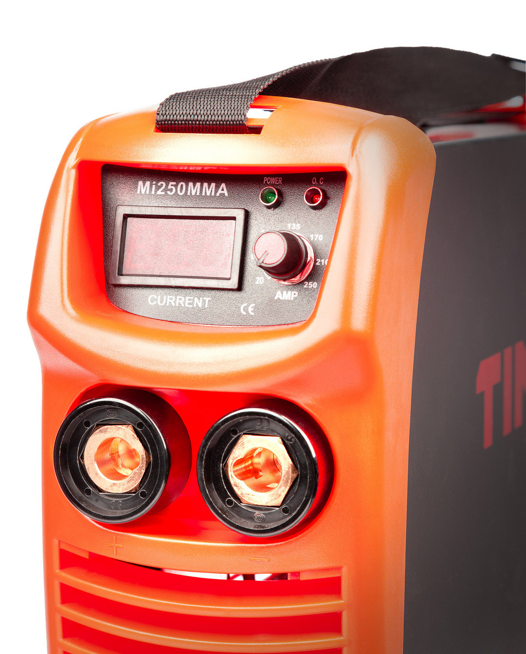 Timco svejseinverter Mi250MMA er en brugervenlig elektrodesvejser udstyret med IGBT-teknologi, egnet til både hobby- og professionel brug. Svejseinverteren er meget kompakt, let og alligevel effektiv. Den er nem at bære og flytte, mens arbejdet skrider frem. Enheden kan f.eks. bruges sammen med Kipors generator på byggepladser.