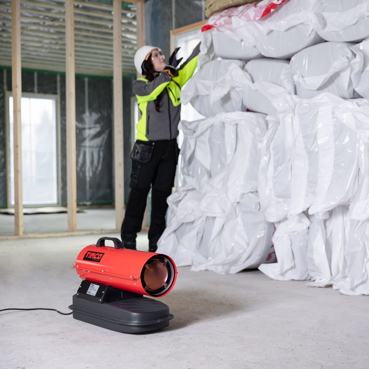 "Det er mere meningsfuldt og mere sikkert at arbejde i en varm hal. Timco varmer 10 kW holder din garage varm. Du indstiller nemt den ønskede temperatur med en termostat."