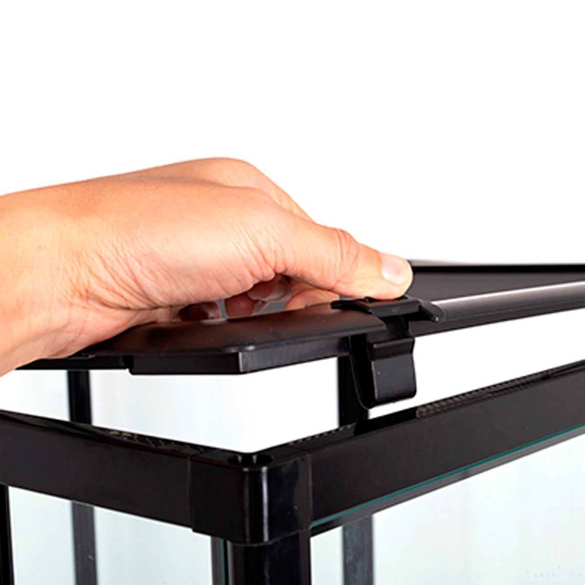 Transparent design med sort ramme: Sikrer nem observation af reptiler eller kæledyr, samtidig med at det tilføjer et moderne touch til enhver indretning.